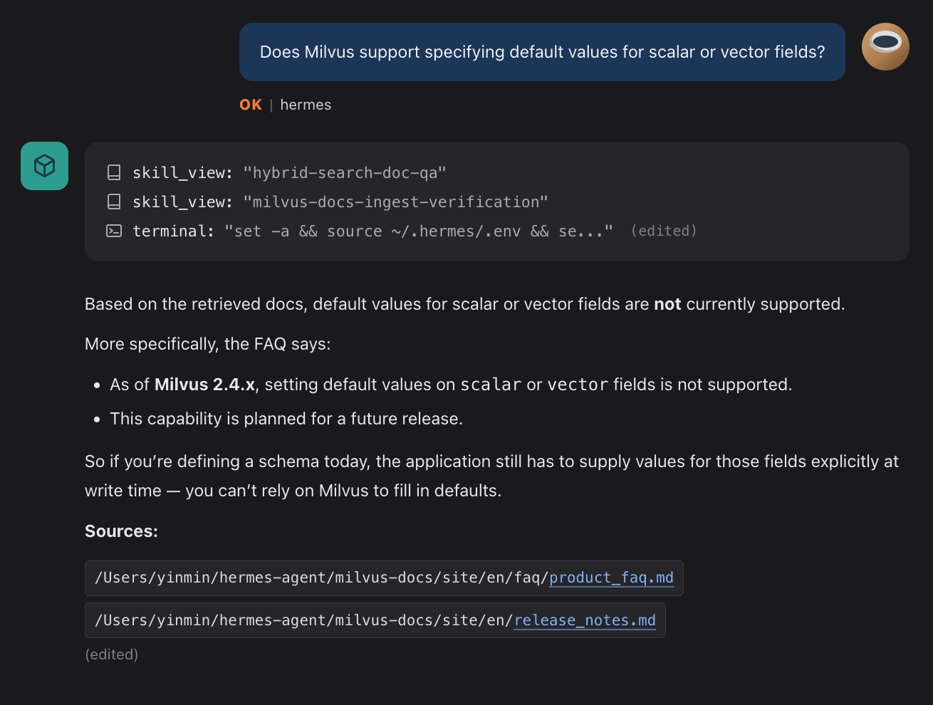 Got questions about Hermes + Milvus hybrid search?