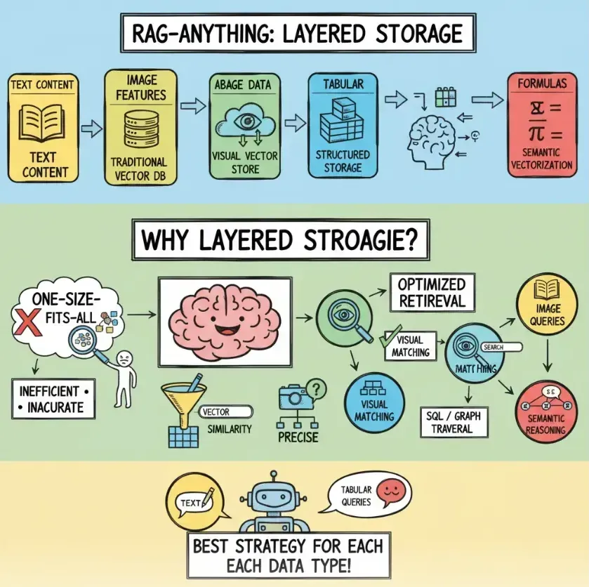 On top of its multimodal design, RAG-Anything also uses a layered storage and retrieval approach to make results more accurate and efficient.